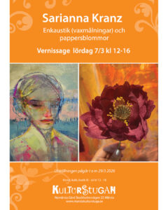 7 mars Vernissage Sarianna Kranz Enkaustik (vaxmålning) och pappersblommor