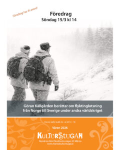 15 mars kl 14 Föredrag Göran Källgården berättar om flyktinglotsning från Norge till Sverige under andra världskriget